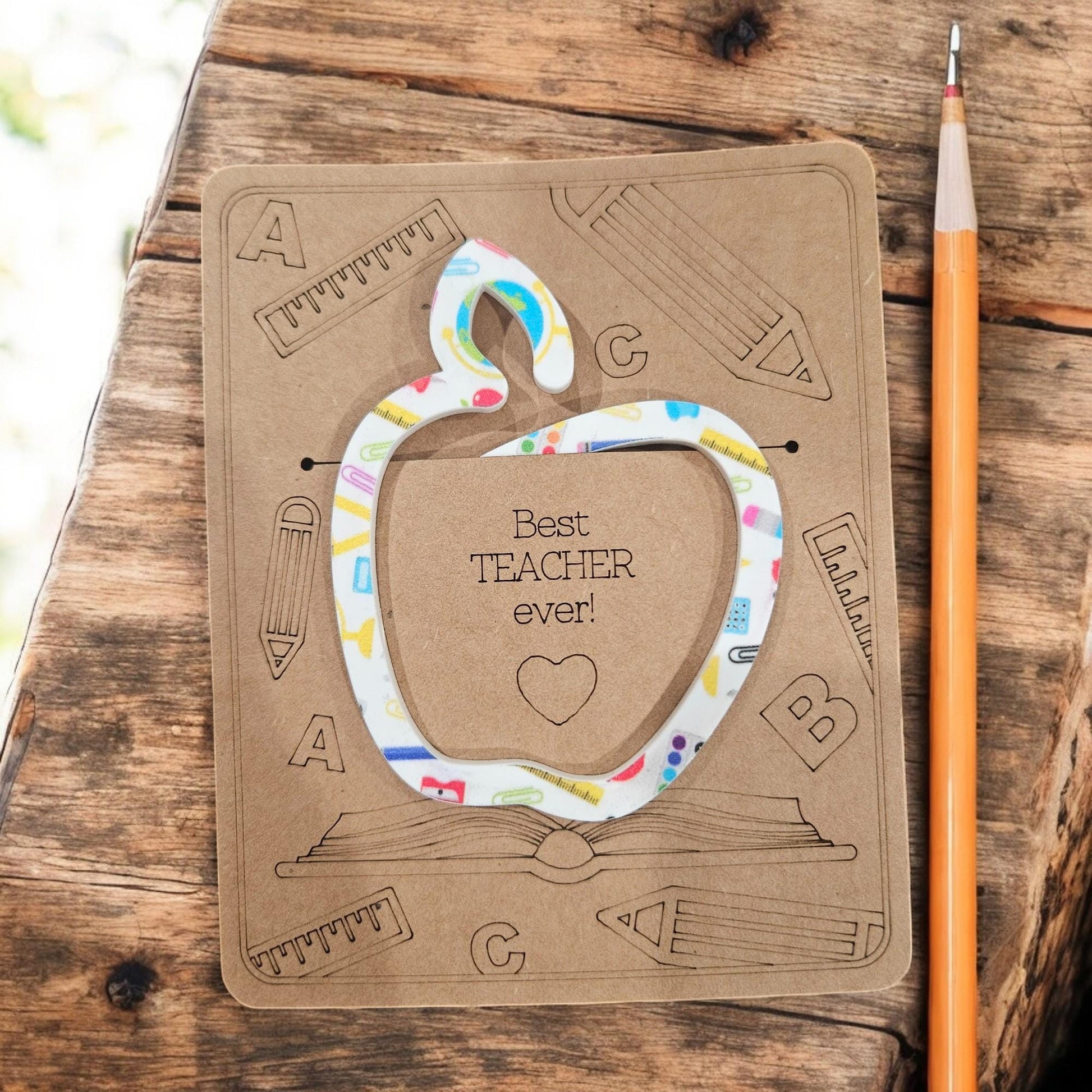 This apple-shaped acrylic bookmark is the perfect gift for teachers or book lovers! Featuring colorful school-themed designs like rulers, pencils, and erasers, it adds a fun, functional touch to any book. Available in a variety of tag styles to suit every educator’s spirit, this bookmark is both practical and thoughtful.
