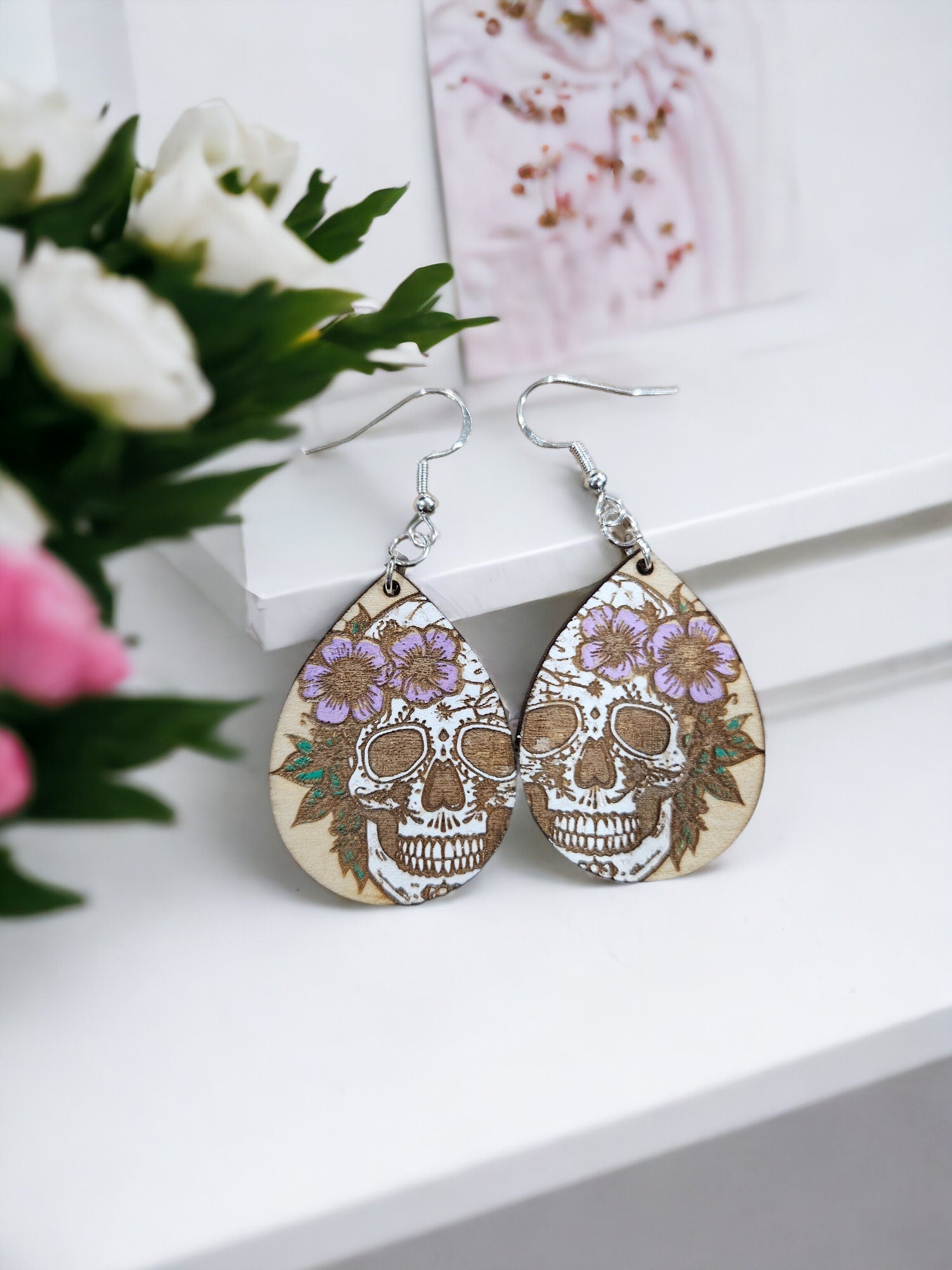 These sugar skull floral earrings are the perfect blend of edgy and feminine. With a skull design adorned with vibrant flowers, they add a unique and stylish touch to any outfit. Made with high-quality materials, these earrings are not only fashionable but also durable. Whether you're going for a casual or a more dressed-up look, these earrings are sure to make a statement and showcase your individuality.