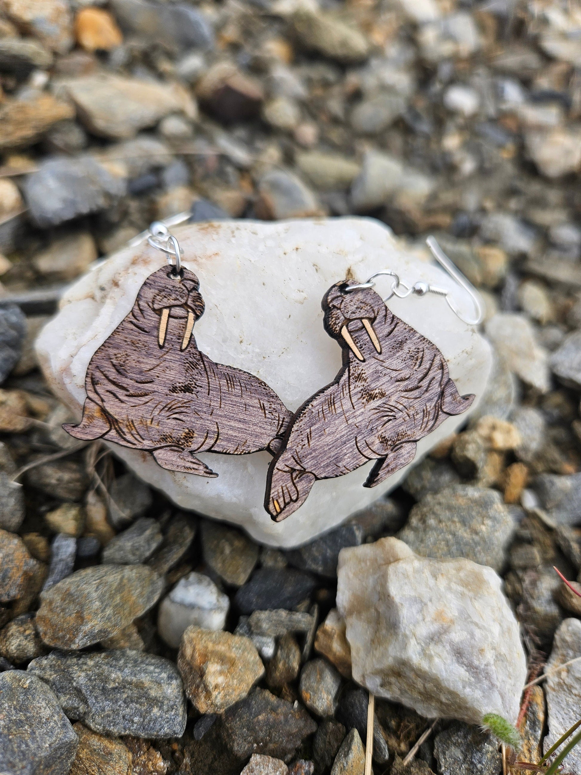 Discover unique and stylish walrus wooden earrings inspired by the majestic creatures of the Bering Sea.